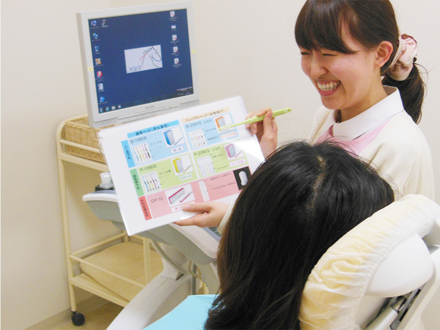 当院の歯科衛生士業務は、主に歯周病治療・メンテナンスです。定期健診で再会を喜び、笑顔で患者さんを送り出す。患者さんから直接「ありがとう」と感謝される機会も多く、やりがいのある仕事です。
