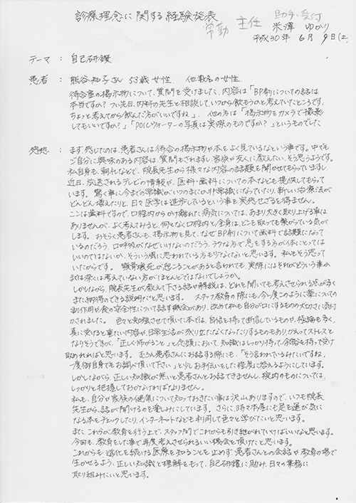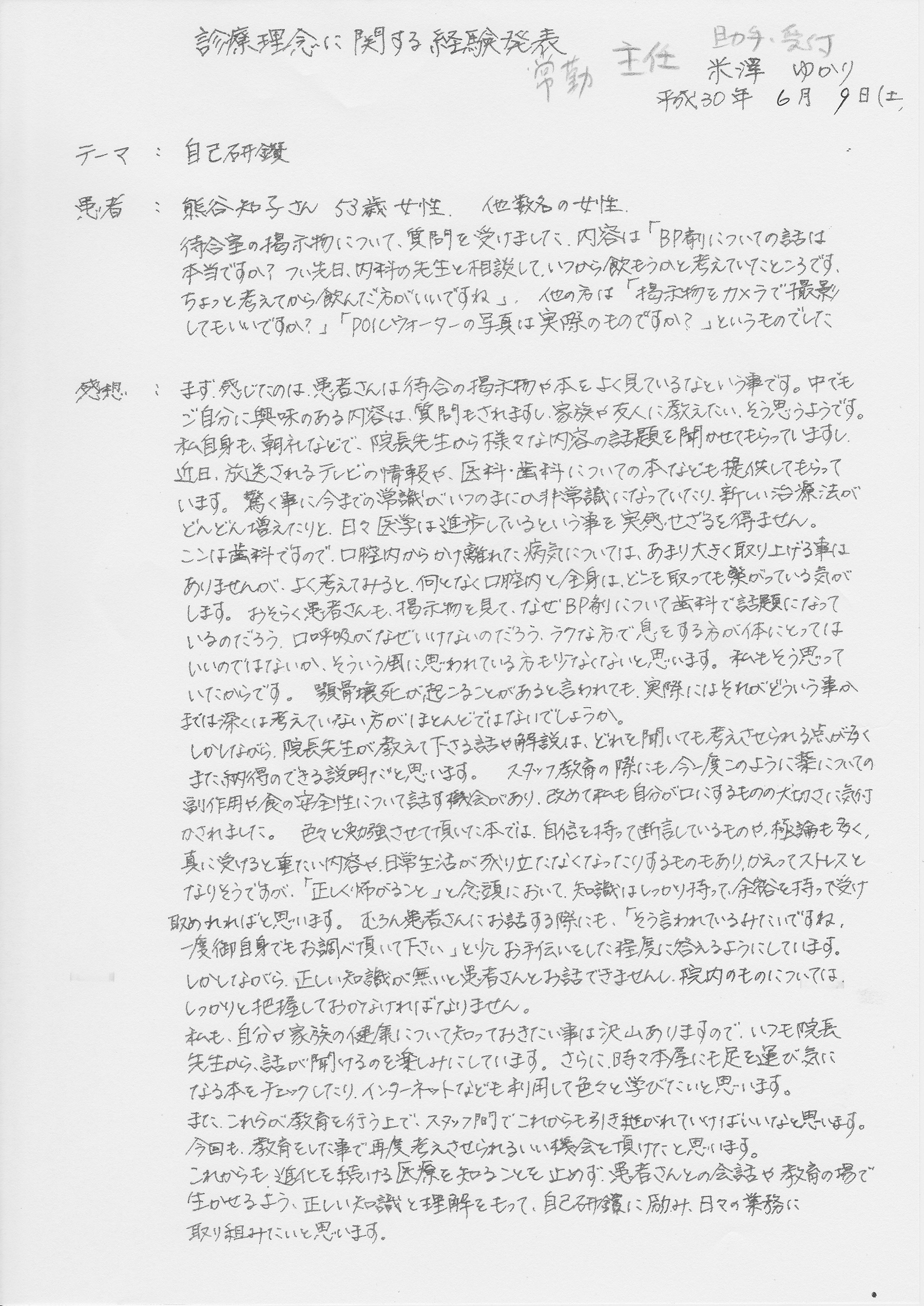 2.患者さんを中心とした歯科医療を提供し、患者さんに感動を与えるため努力する