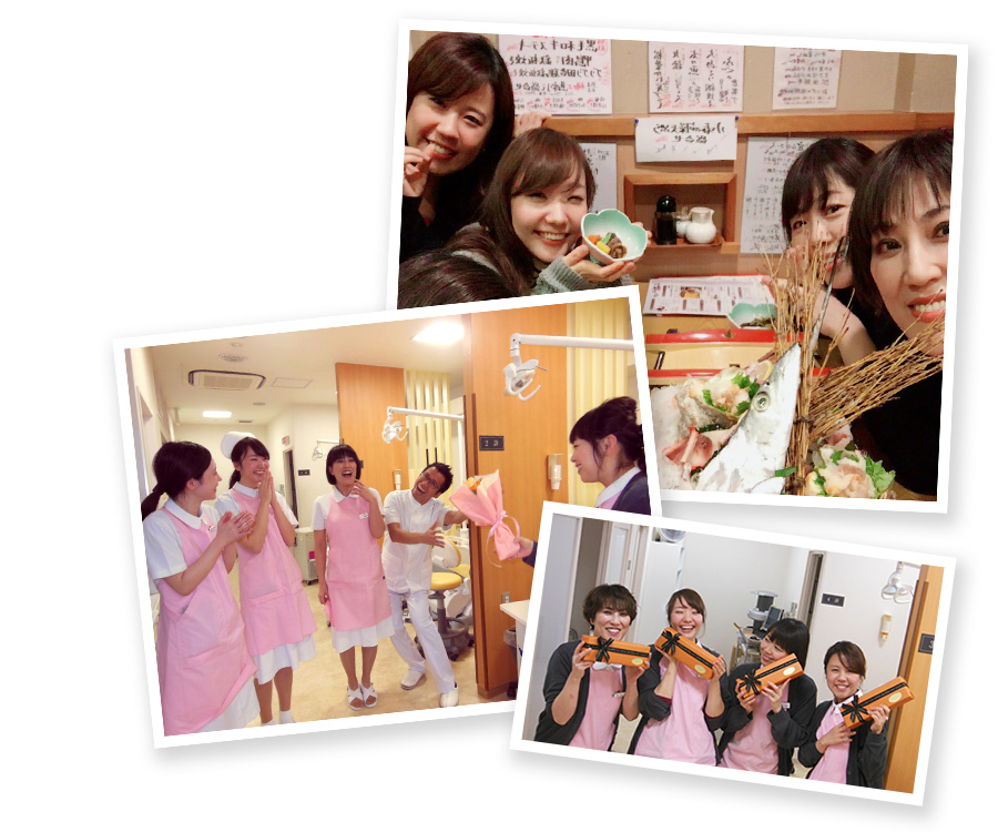 また、全身の健康・口腔マッサージ・あいうべ体操・生活習慣チェックなどあらゆる面から患者さんの健康のサポートを目指し、院内セミナーや勉強会を開催。診療時間内に行われるので、無理なくステップアップでき、仕事への自信や自分自身の成長も実感できます。